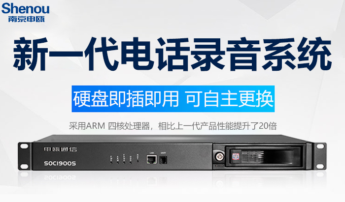 申甌SOC1900S和SOC1600S電話錄音系統(tǒng)新品上市 申甌SOC1900S和SOC1600S系列產(chǎn)品是申甌公司研發(fā)的新一代錄音系統(tǒng),硬盤可自主更換,采用國際語音壓縮技術(shù),支持WAV和MP3文件格式,支持2、4、8、10倍等壓縮,每G...