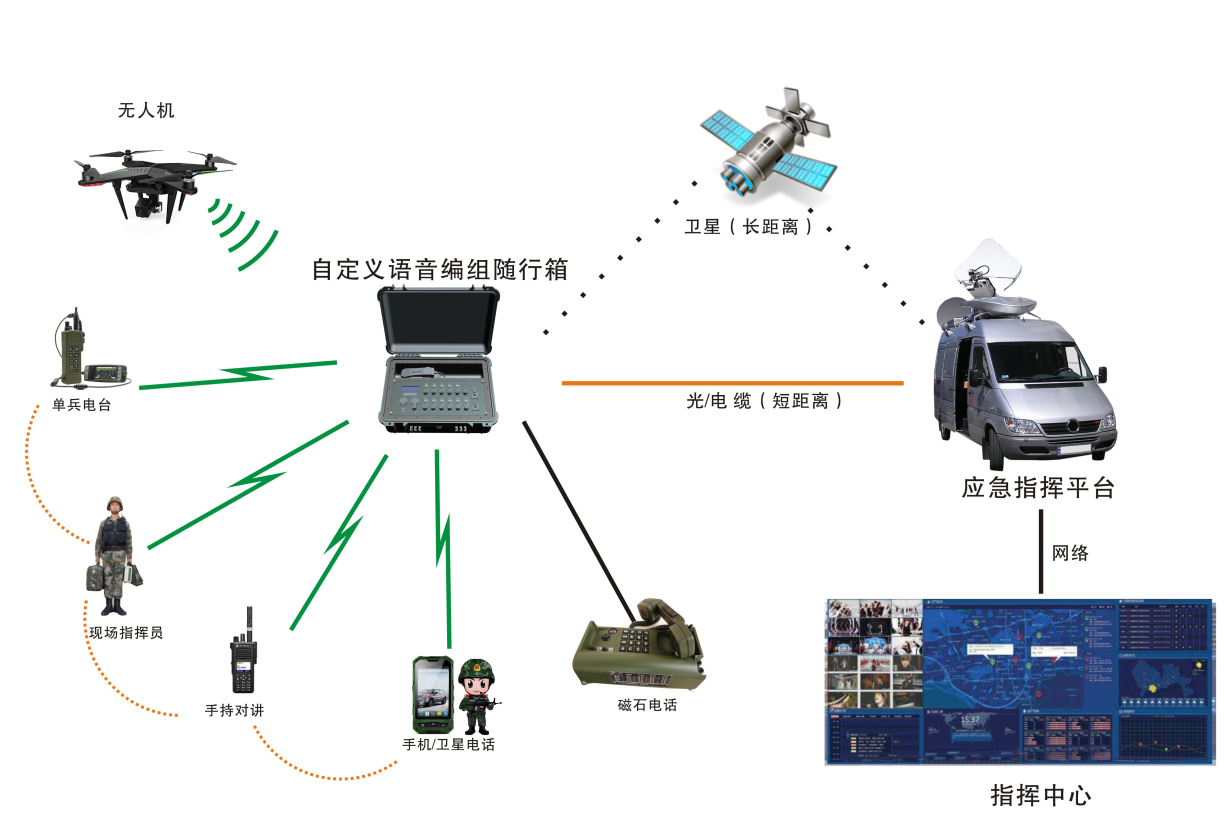 自定義語音編組隨行箱設(shè)備根據(jù)使用場合不同分為便攜式(防水)和機(jī)架式(可車載),滿足現(xiàn)場不同通信設(shè)備的快速互聯(lián)互通需求;支持有線延長模式(1.5Km),可將無線信號(hào)覆蓋至室內(nèi)、地下或其它原來無法通信的特殊區(qū)域;支持快速分組模式,將接入的設(shè)備通過簡單的切換開關(guān)分成兩個(gè)通話組,同組有效語音互相轉(zhuǎn)發(fā),兩個(gè)組同步工作互不影響。為公共應(yīng)急事件處理各組成單位提供通信設(shè)備的低成本互聯(lián)接入解決方案,快速完成現(xiàn)場統(tǒng)一的語音調(diào)度指揮系統(tǒng)搭建,為應(yīng)急事件處理提供可靠的通信互聯(lián)平臺(tái)。